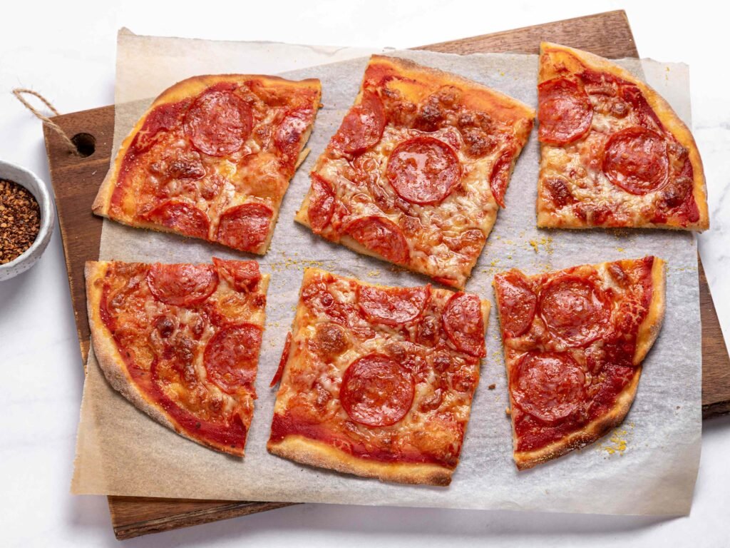 A pizza está pronta quando a borda estiver dourada e crocante, e o queijo estiver derretido e levemente borbulhante. Um visual apetitoso é um ótimo indicador!