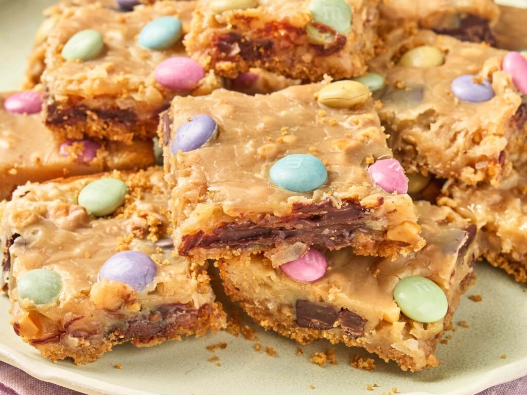 Estas barras mágicas de M&M são uma verdadeira explosão de sabor e textura. Elas assam em um cookie delicioso e pegajoso, tudo isso sobre uma base de bolacha graham. O equilíbrio perfeito entre o crocante e o macio faz dessa receita uma deliciosa opção de sobremesa que agradará a todos.