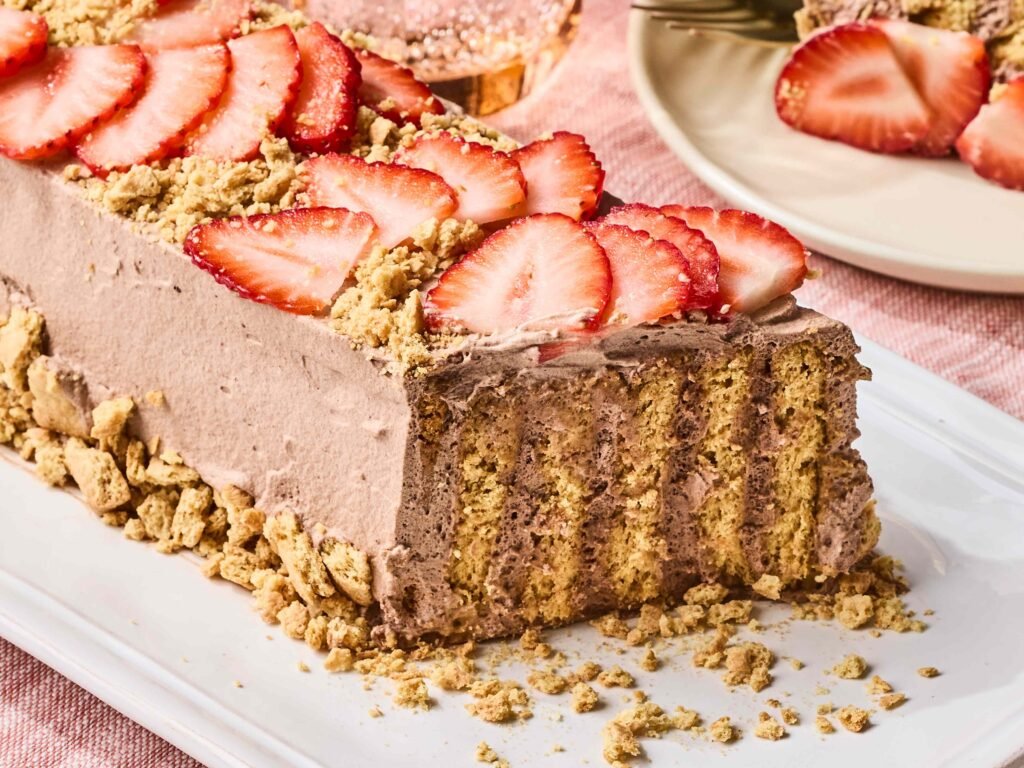 Este bolo refrigerado mágico é uma verdadeira maravilha que não requer forno e é perfeito para os dias quentes. A combinação de creme de chocolate leve, bolachas de maisena e morangos frescos cria um doce que agrada aos olhos e ao paladar, com camadas que parecem verdadeiras obras de arte.